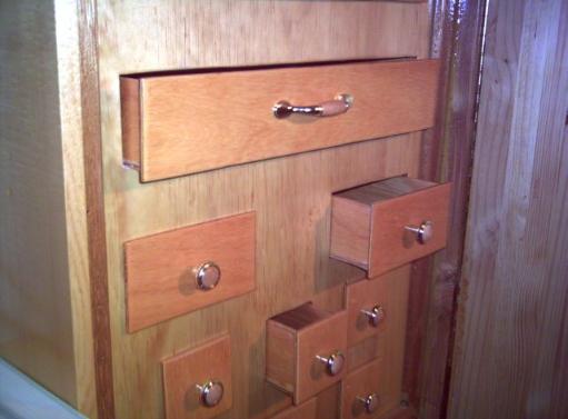 | Drawers provide plenty of storage for small items, shelves provide for larger items and a matching stool for reaching upper shelves. |