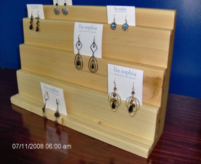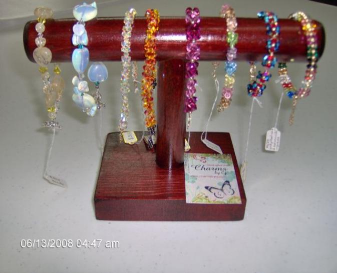 | Whether you sell jewelry for a living, just have some you want to show off or want to display some in your room- these racks will help you out! Solid pine, with your choice of colored finish/gloss. As shown: Heart(10" H)-$35.00 Slot Rack(16"W x 11"H)-$45.00 "T" Rack(6"H x 8"W)- $25.00 |