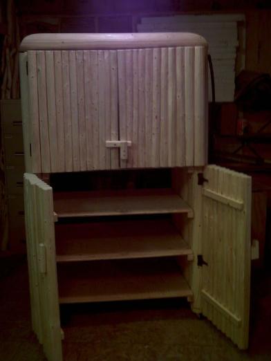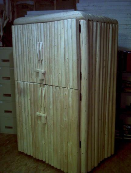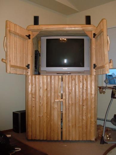 | Spruce Log T.V. Cabinet with turn-latch doors and wheels. 72"H x 39"D x 45"W $1,750.00 |
