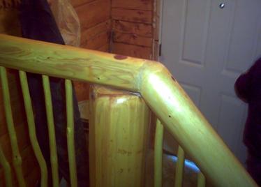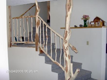 | For all log railings, fresh local wood is used. Posts and rails are fashioned by hand from Spruce and Pine, and all balusters are hand-cut and finished from Alaskan Willow. |